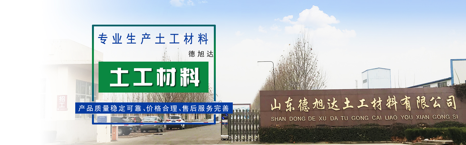 山東德旭達土工材料有限公司是目前規(guī)模較大,品種較全的土工合成材料專業(yè)生產企業(yè),是全國土工合成材料生產基地重點企業(yè)之一,注冊資本為5070萬元,占地面積120畝,現(xiàn)有員工100余人,其中各類專業(yè)技術人員40多人。 地理位置優(yōu)越,交通十分便捷。山東德旭達土工材料有限公司位于西漢大文學家東方朔故里,魯西北著名歷史名城—德州 市陵城經濟開發(fā)區(qū)。京滬高速鐵路依縣而過,京福高速公路、德煙鐵路、京滬鐵...【了解更多】
